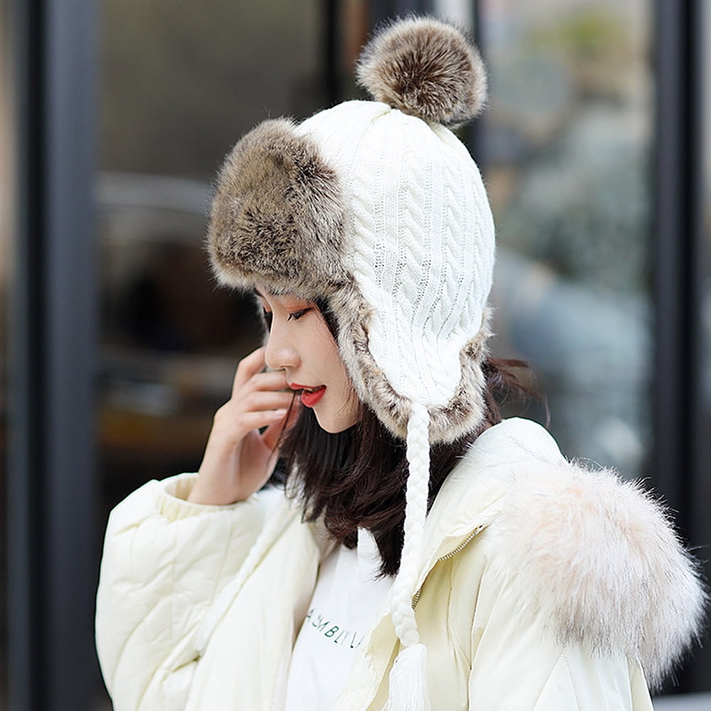 Buy Hair Ball Hat Women Winter Plus Velvet Thickened Warmth Cycling Cold Proof Ear Protection Knitted Woolen Cap Autumn And Winter One Cap Knit Hat Wool Hat Fordeal Winter Thick Outdoor Earflap Warm